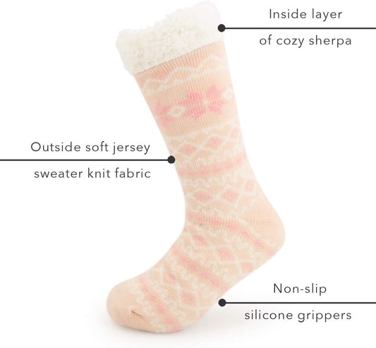 Sock Slippers for Women - 2 Pack Non Slip Socks - Fuzzy Socks Warm Socks with Grippers Sherpa Fleece Lined Thermal