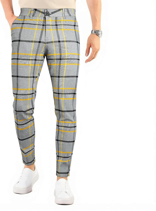 Mens Plaid Dress Pants Stretch Chino Pants Men Slim Fit